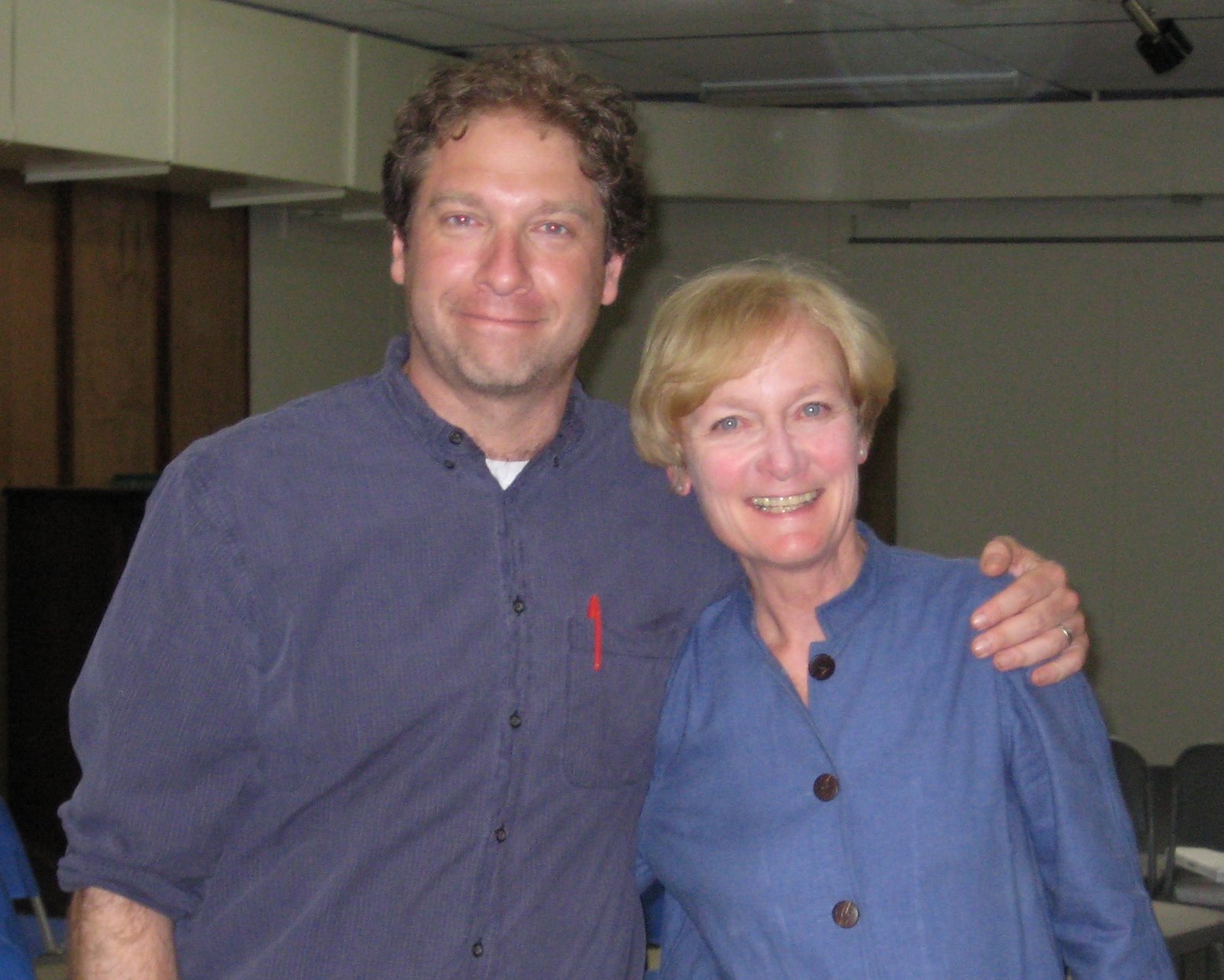 South Portland, Maine middle school librarians, Connie Burns and Dan Wolotsky strike a pose after an evening celebrating kid created comics.