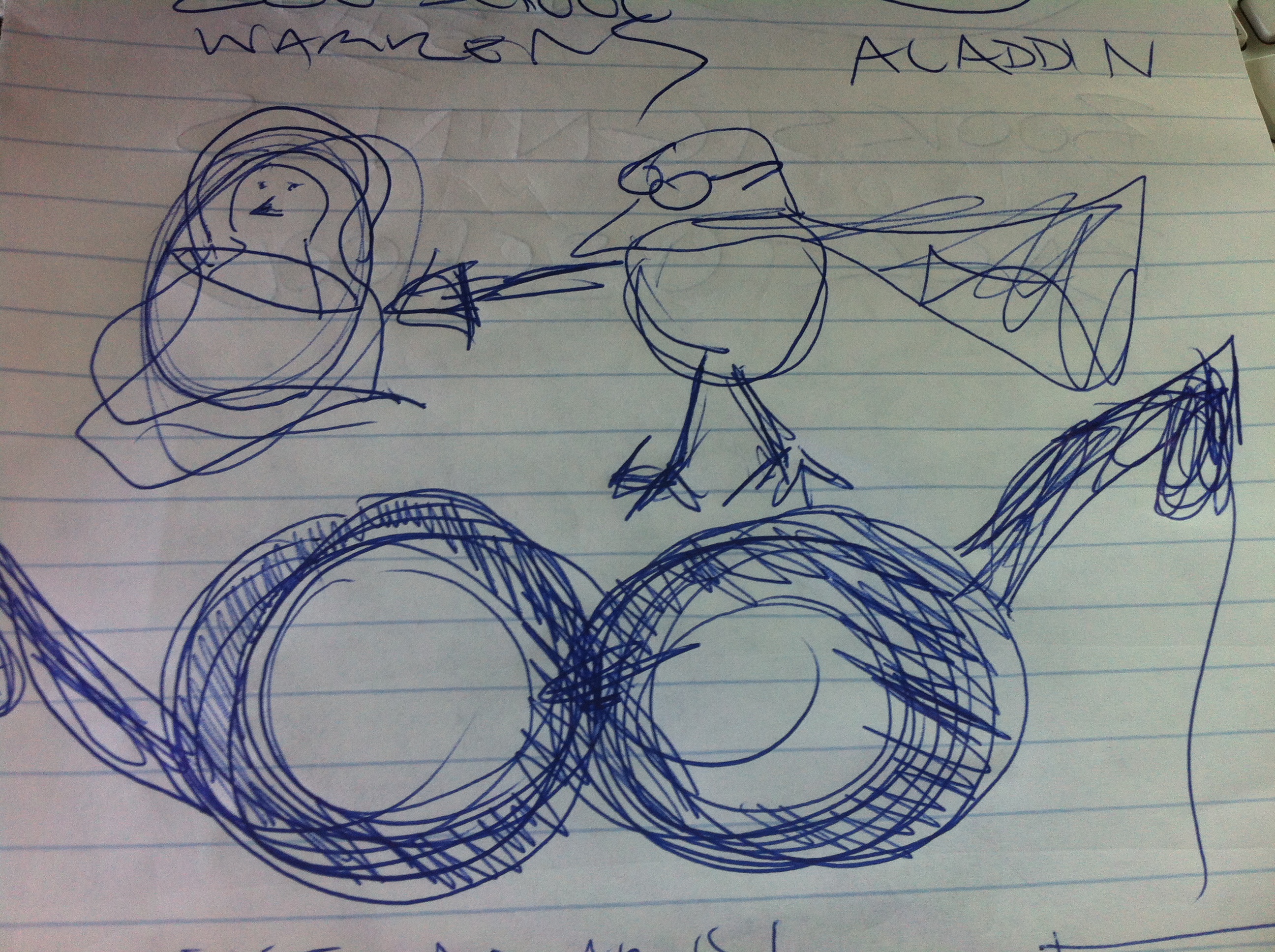 The pièce de résistance of the Story Hour Kit, however was the opportunity to don the signature glasses and beak of Warren. From the initial sketch, Kirsten Cappy and designer Marty Braun set to make the perfect Warren mask. Through extensive testing on ourselves and poor innocent children, we arrived at the perfected beaked wonder.