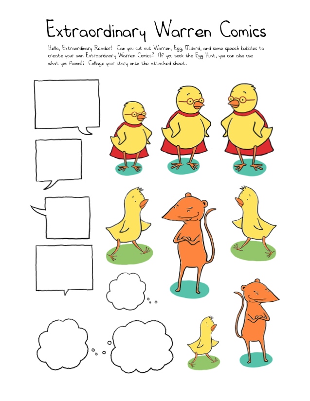Those two paper chickens could then be incorporated into a collage comic project where a reader could create their own Extraordinary Warren Comics.