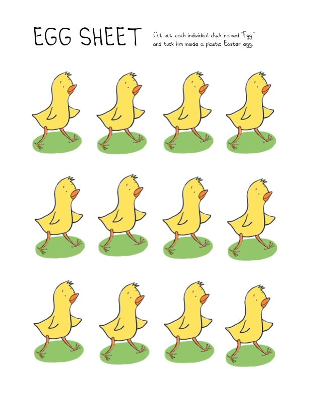 Sarah gamely agreed to make paper Warren’s that readers could hold after a reading of the books and fly around the room until they found the lost paper Egg’s. Since Egg spends most of the first book, well, within an egg, the activity instructions have the organizer roll the paper Egg’s into a plastic Easter eggs. Trust me, it makes perfect sense in context…