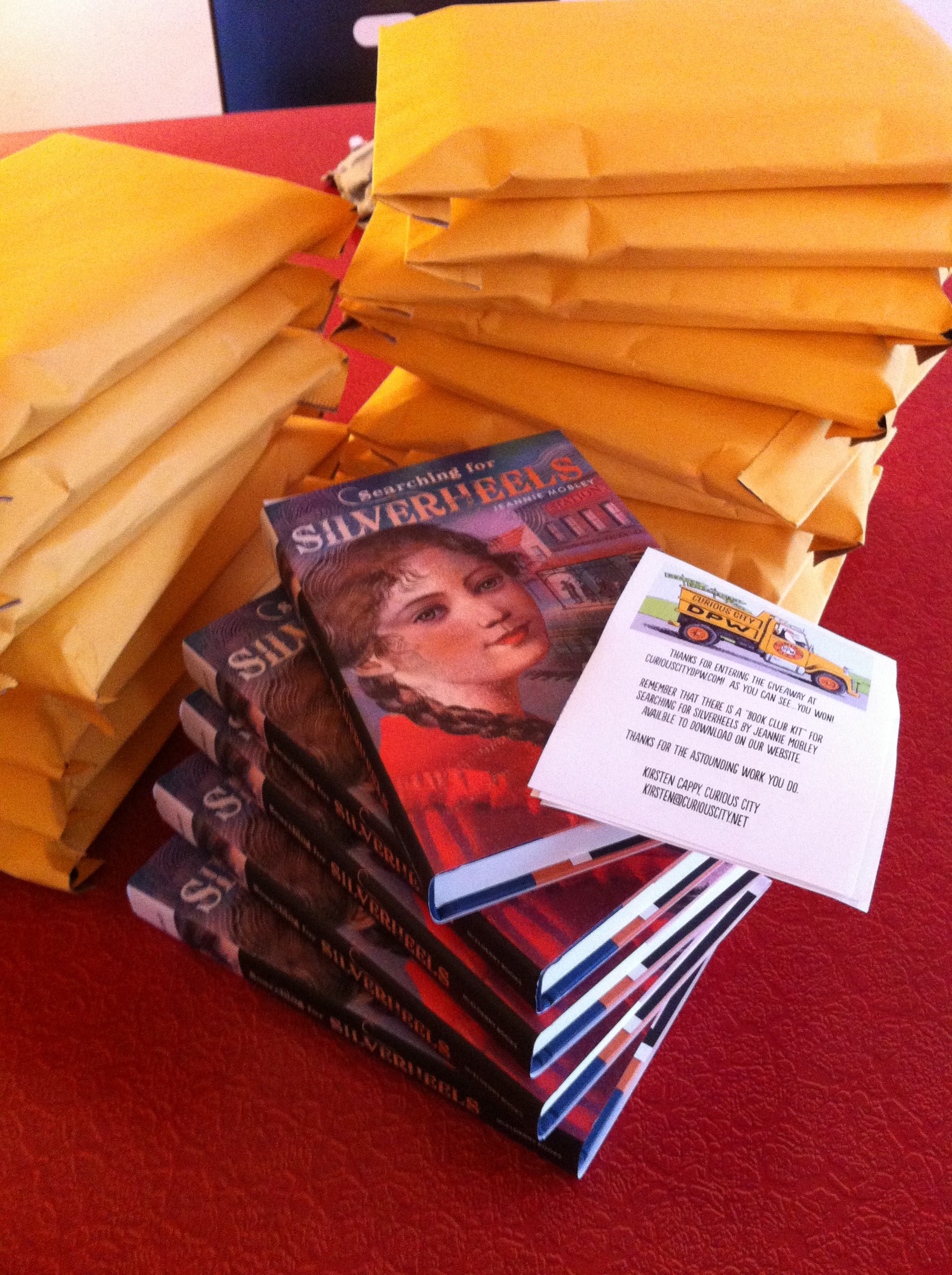In celebration of the release of the novel and the companion Book Club Kit, Curious City DPW, author Jeannie Mobley and Margaret K. McElderry Books gave away 20 copies of the novel Searching for Silverheels to these ever so fine Book Club leaders and librarians: